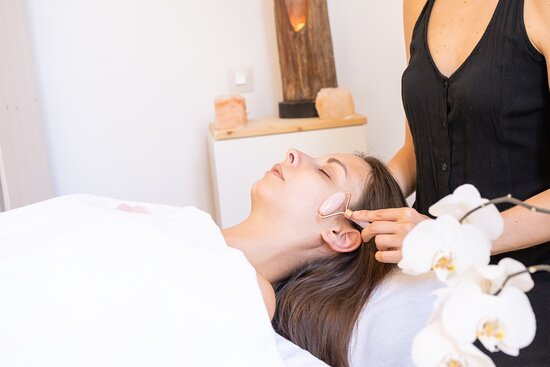 previamente enfriadas o calentadas por su capacidad para retener temperaturas y transmitir energía, con ellas se aplica presión y movimientos suaves sobre el rostro con aceites ricos en antioxidantes y regeneradores. Relaja los músculos faciales, mejora la circulación sanguínea y reduce la hinchazón y la inflamación lo que contribuye a una apariencia más firme y juvenil de la piel.